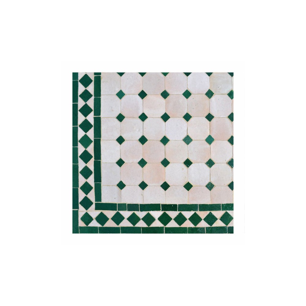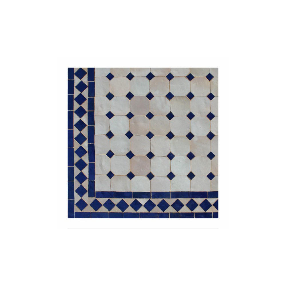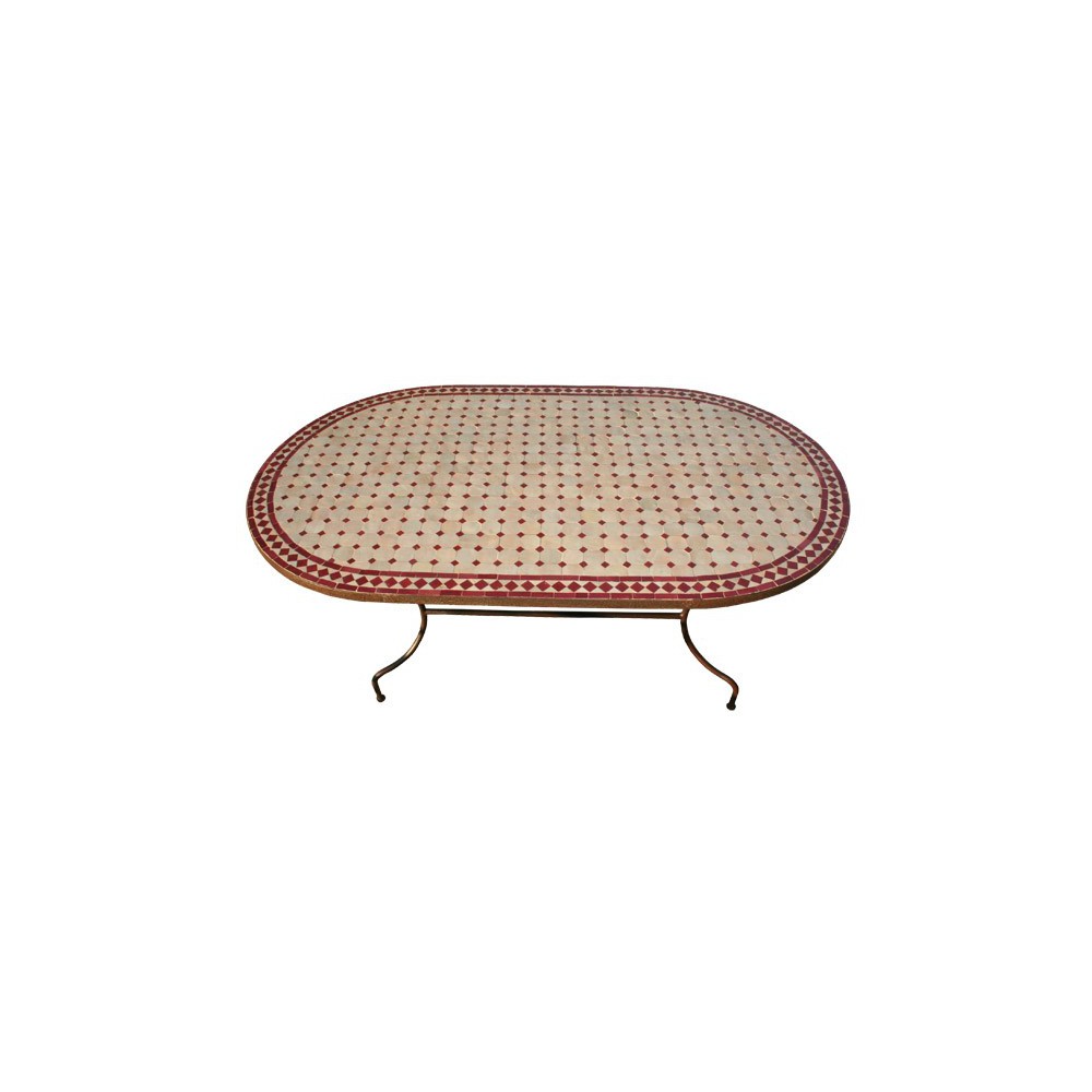 Table en zellige sur pied en fer forgé en fer plein ovale 220/100, pour 8 à 10 personnes, déclinée en de multiples combinaisons de couleurs.