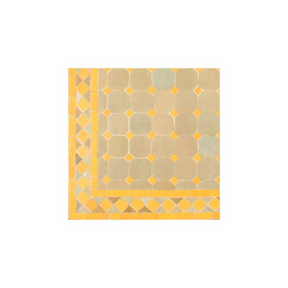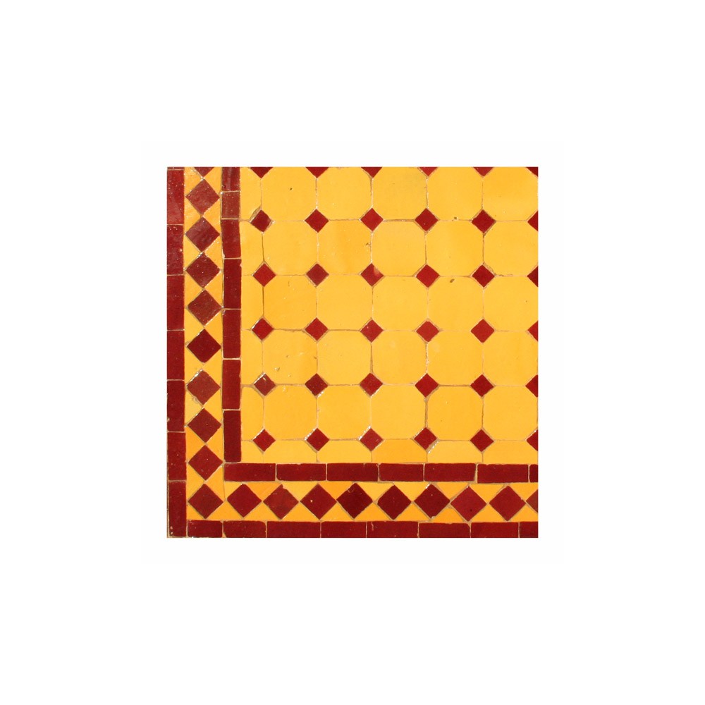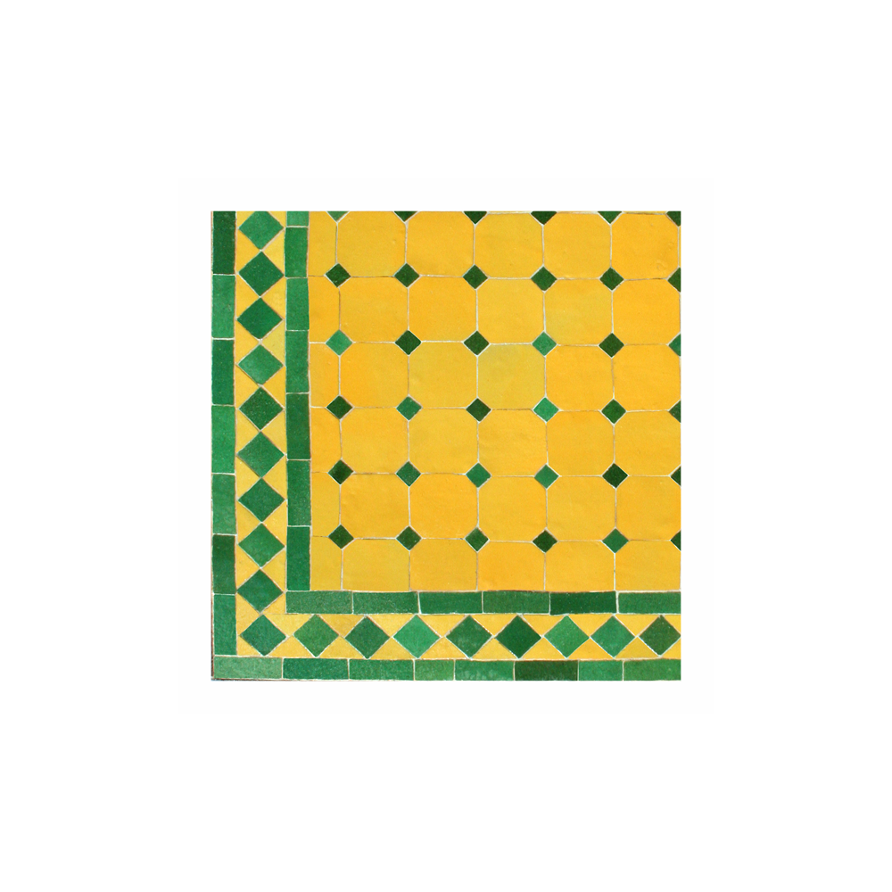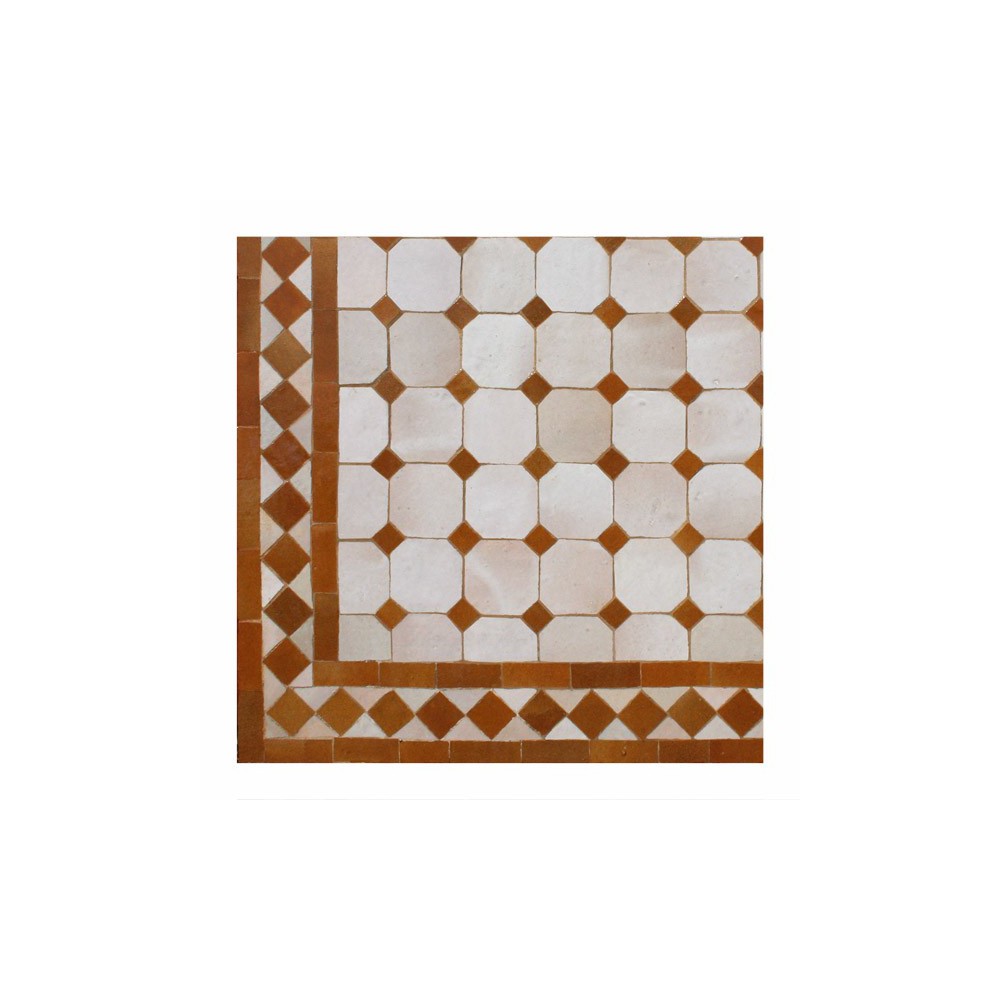Table en zellige sur pied en fer forgé en fer plein ovale 220/100, pour 8 à 10 personnes, déclinée en de multiples combinaisons de couleurs.